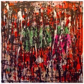 100cmX100cm Tag der deutschen Einheit Dispersion und Acryl auf Leinwand gespachtelt, gekratzt, geklebt, gekleckst. 2015 Entwicklung